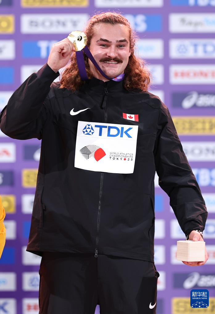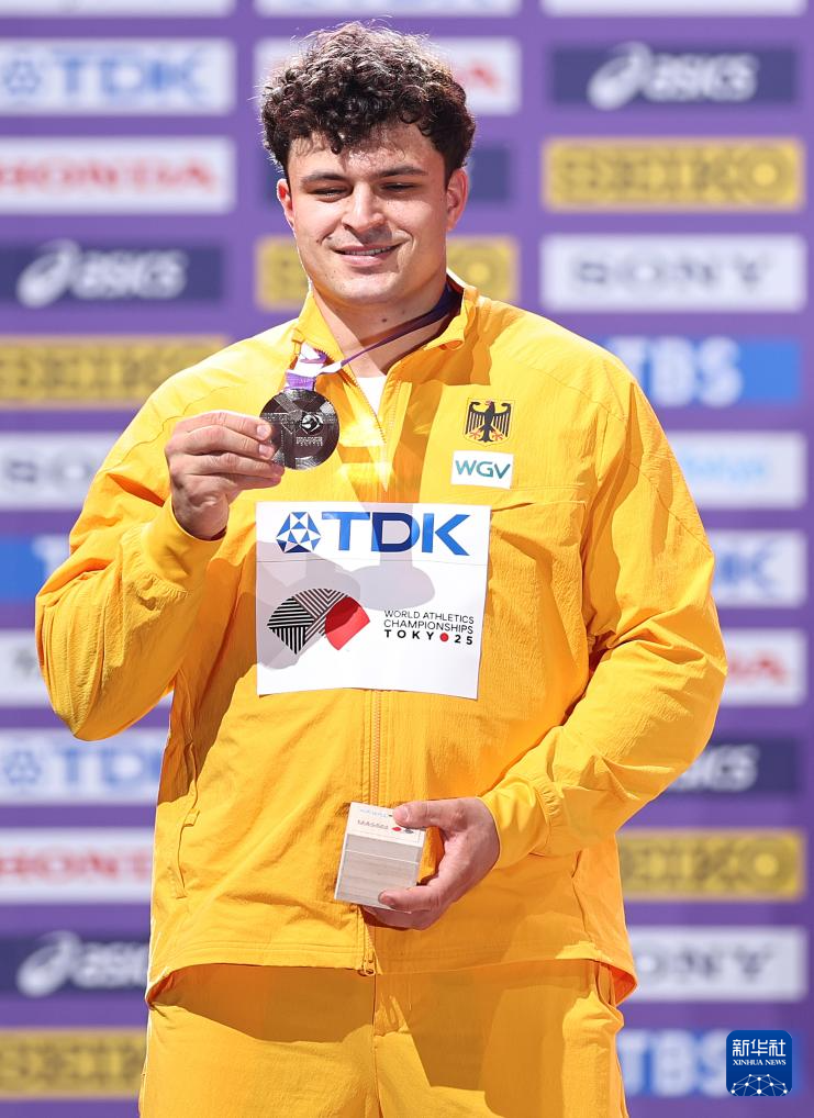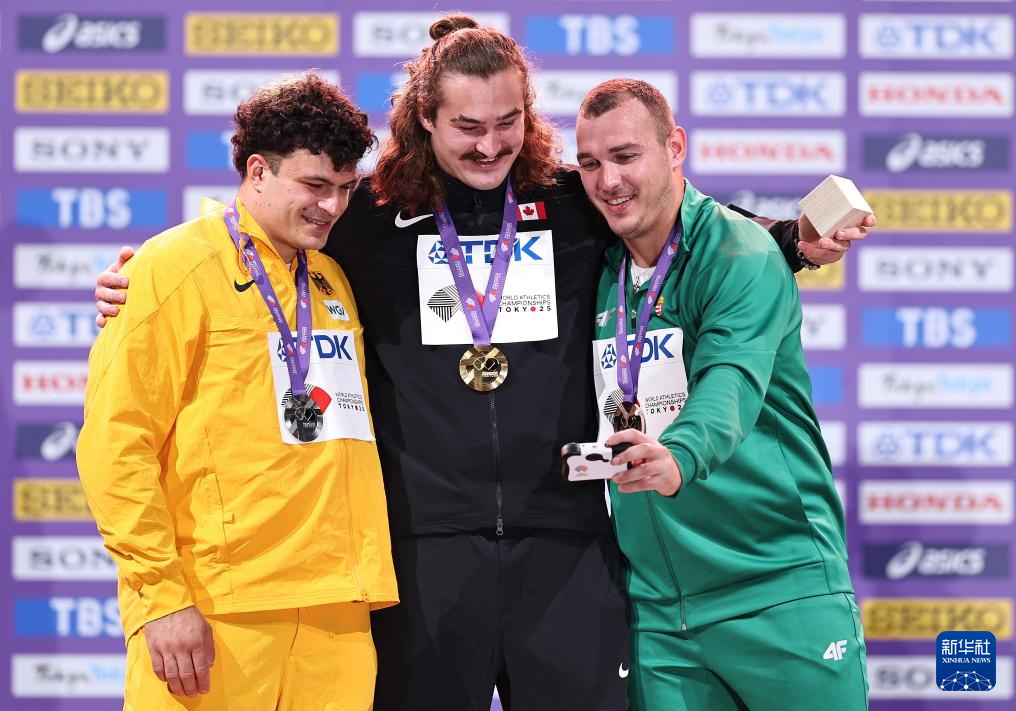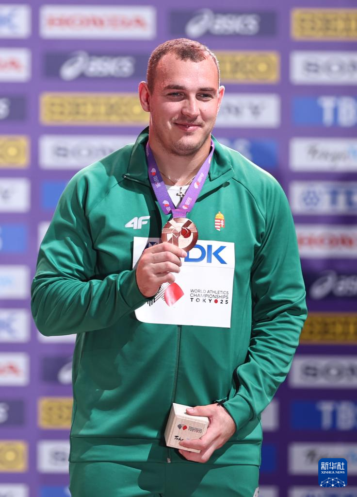 当日,2025年世界田径锦标赛男子链球颁奖仪式在日本东京举行。