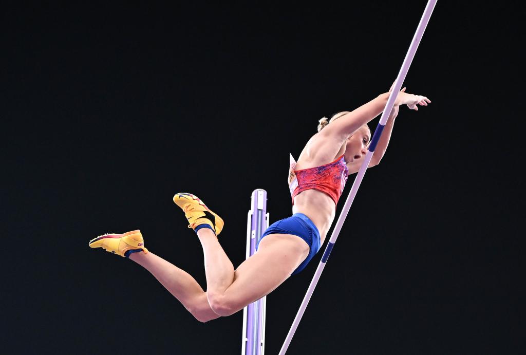 9月17日,美国选手穆恩在女子撑杆跳高决赛中试跳。体育日报记者 宋彦桦 摄