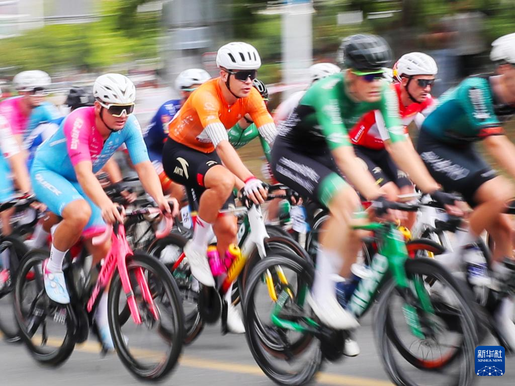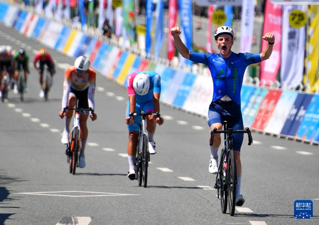 9月22日,澳大利亚凯旋X巴迪瑞车队车手伊瑟(右一)率先冲过终点,获得赛段冠军。