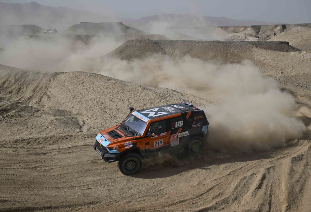 2025环塔拉力赛上,来自中国、英国、法国等9个国家(地区)的55支车队、233名车手在13天时间里跨越5000多公里,行程覆盖新疆南部多个县市。